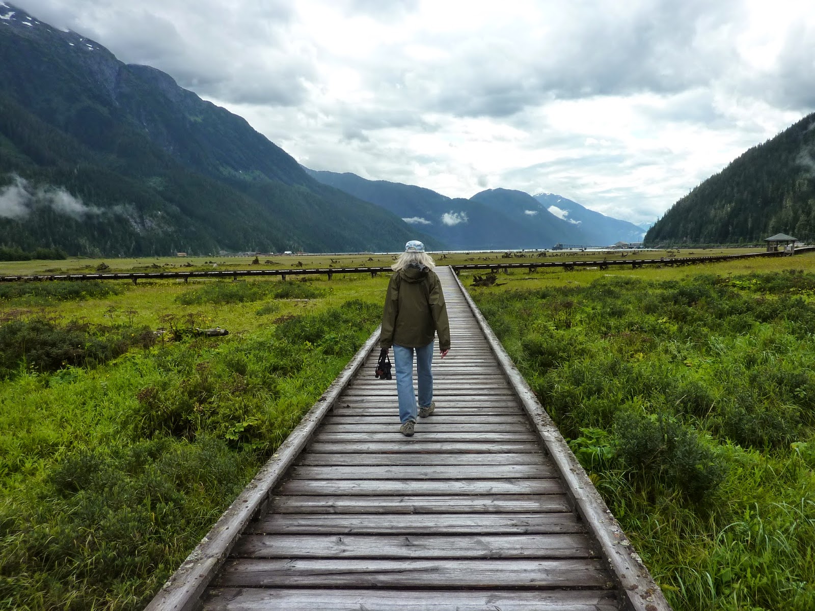 On the way back we stop at the forest service bear viewing area but it’s too early to see bears. Lots of people with big camera lenses are waiting patiently on the boardwalk. We have bear-sized appetites and don't wait for them to make an appearance.